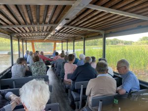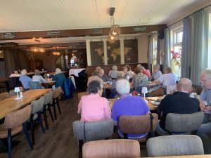Bij restaurant “De Otterskooi” stond een goede lunch gereed. Na het eten lag op loopafstand de boot klaar voor een mooie tocht door de grachten (restanten van de veenafgravingen) en over het Giethoornsche Meer. Iedereen genoot zichtbaar van deze boottocht, het hoogtepunt van de dag.