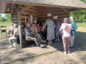 Na de boottocht was de bedoeling om de reis voort te zetten richting Nieuwleusen-Dedemsvaart. Door een file moest de route echter worden aangepast en ging het richting Dalfsen-Ommen. Martijn besloot te stoppen voor een picknick bij de Beerzer Poort, een schitterende locatie die sommigen nog kenden van enkele jaren geleden. Annie en Rieky hadden gezorgd voor smakelijke hapjes en drankjes. Daarnaast konden sommige leden hier nog snel een boek bemachtigen tegen een vrije gift, een bijzonder initiatief!